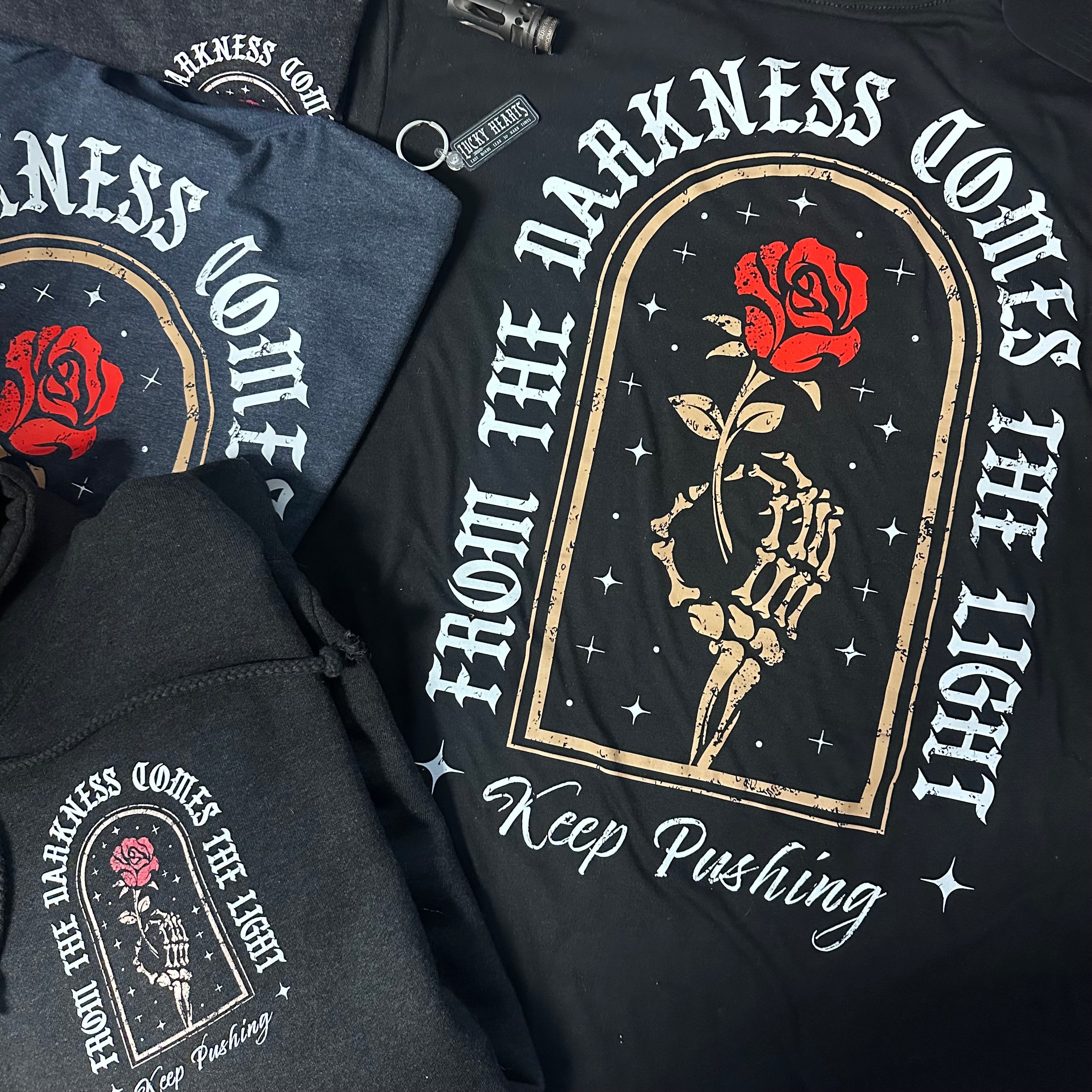 At Lucky Hearts, we take pride in our small business roots. Our hands on approach to the process guarantees top-notch products from start to finish. Every step of our process is done right here in-house. From the original design work, to the screen printing to the shipping and transit operations, we do it all. As outdoor enthusiasts, tattoo lovers, and fitness junkies, we have merged our passions into one awesome collection of artwork and clothing for you to to enjoy.